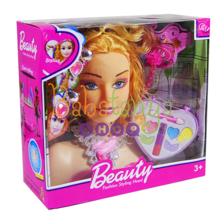1 db baba fej 1 db nyaklánc 2 db póthaj 3 db csat 1 db smink készlet 1 db fésű 1 pár fülbevaló
