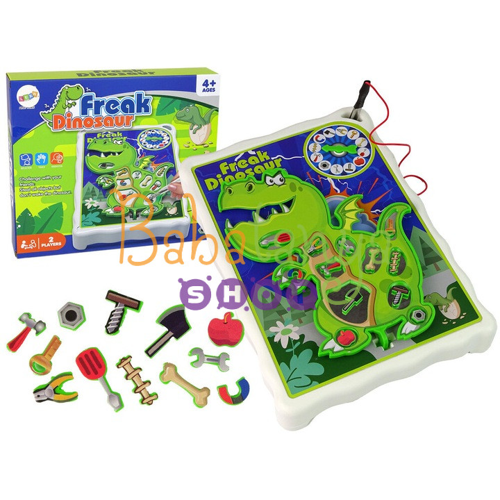 Próbáld ki ezt az izgalmas társasjátékot, amely tökéletes választás családi játékestekre vagy baráti összejövetelekre. A cél, hogy a dinoszaurusz gyomrából kiszedd a tárgyakat anélkül, hogy felébresztenéd! A játék során a gyerekek fejleszthetik kézügyességüket és szem-kéz koordinációjukat.A dobozban mindent megtalálsz, ami a játékhoz szükséges: egy dinoszaurusz táblát, egy csipeszt, egy matricalapot, és 12 tárgyat, amit a dinoszaurusz „megevett”. A játék interaktív és meglepetésekkel teli, hiszen a dinoszaurusz váratlanul „megijedhet” a fogó legkisebb érintésére is.
